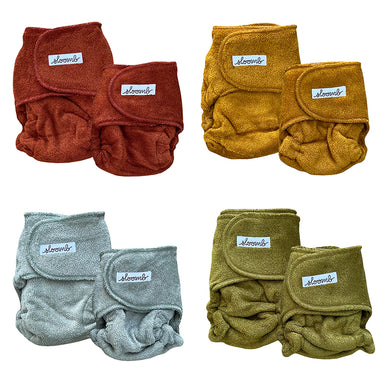 Velour HLCs are soft, trim, and super absorbent - extra soft fluff for your little ones! HLCs are 2-size fitted cloth diapers from Sloomb - same c...