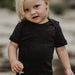 Content: 100% merino wool. Sizes 6-24 mos have an envelope neck. Sizes 2-10 have a crew neck.