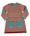 Stripe dress proto sample with light blue pockets and heart intarsia on the elbow.